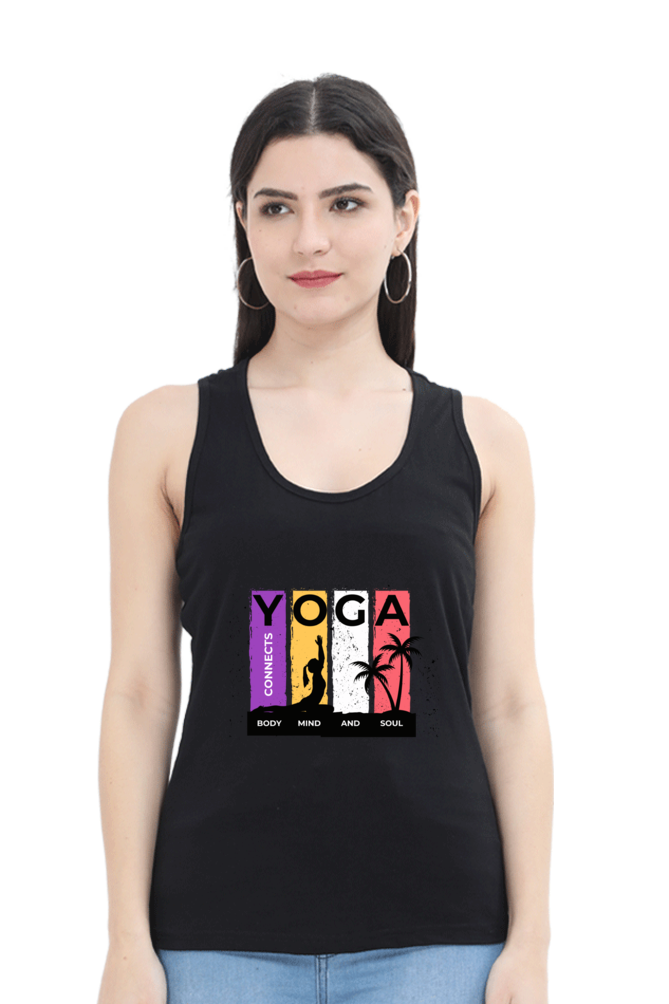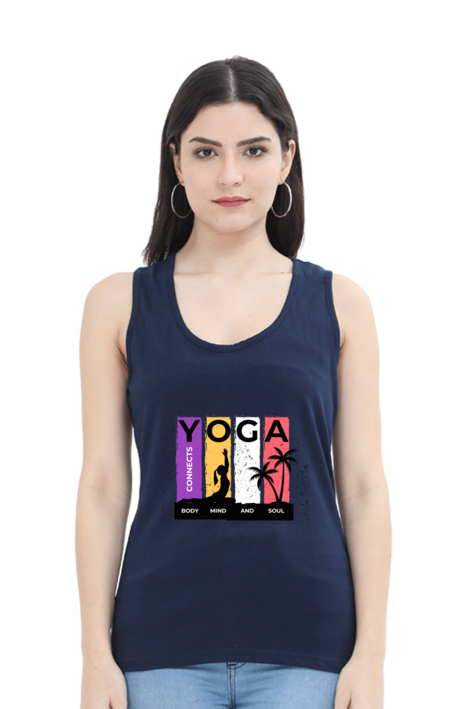 Women's Super Combed Cotton Rib Fabric Slim Fit Solid Yoga Scoop Neck Sleeveless Printed Tank Top